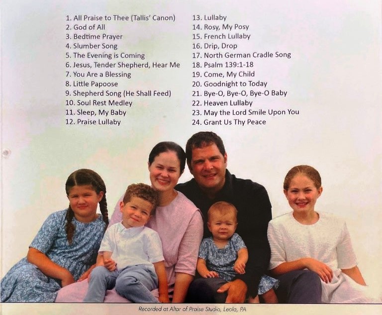 Bedtime Prayer• Slumber Song• The Evening is Coming• Little Papoose• Sleep, My Baby• Grandma song sung by my mother-in-law, a rain song with soft rain sound effect in the background, a German verse in the North German Cradle Song,