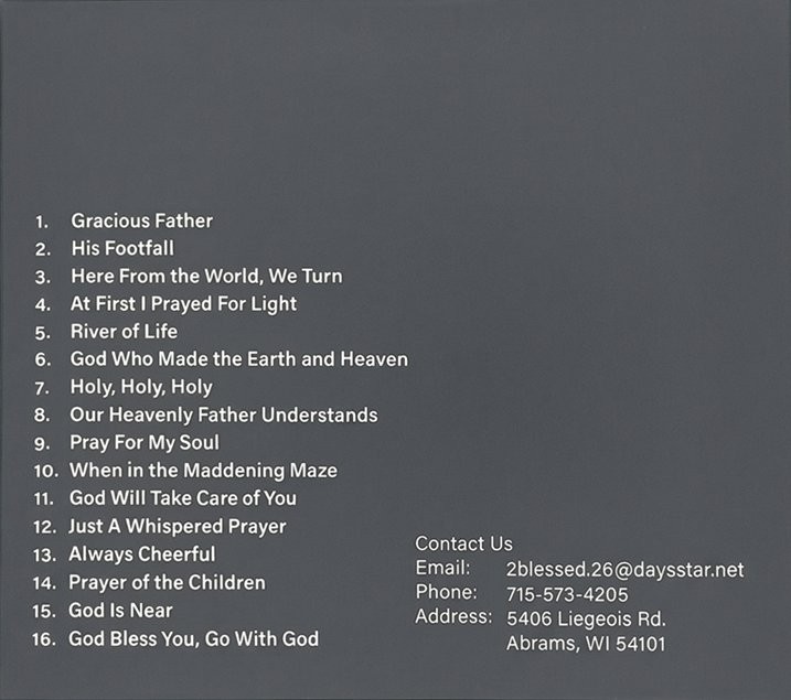 Gracious Father • His Footfall • Here From the World, We Turn • At First I Prayed for Light • River of Life • God Who Made the Earth and Heaven • Holy, Holy, Holy • Our Heavenly Father Understands • Pray for My Soul • When in the Maddening Maze • God Will Take Care of You • Just a Whispered Prayer • Always Cheerful • Prayer of the Children • God Is Near • God Bless You, Go With God