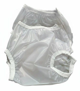 Heavyweight and very durable with soft Lycra bindings. Old time quality. 100% Polyvinyl Chloride. 2 per pack. Sizes: Newborn, Small, Medium, Large, XLarge, or Toddler.