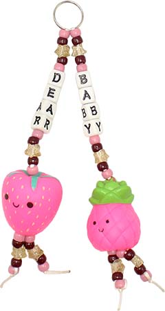 Plastic beads with the words Baby Dear and a shaped rubber on a split ring keychain. Made by a girl with special needs. 9" long. Assorted Colors.