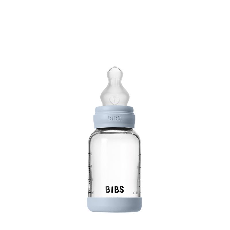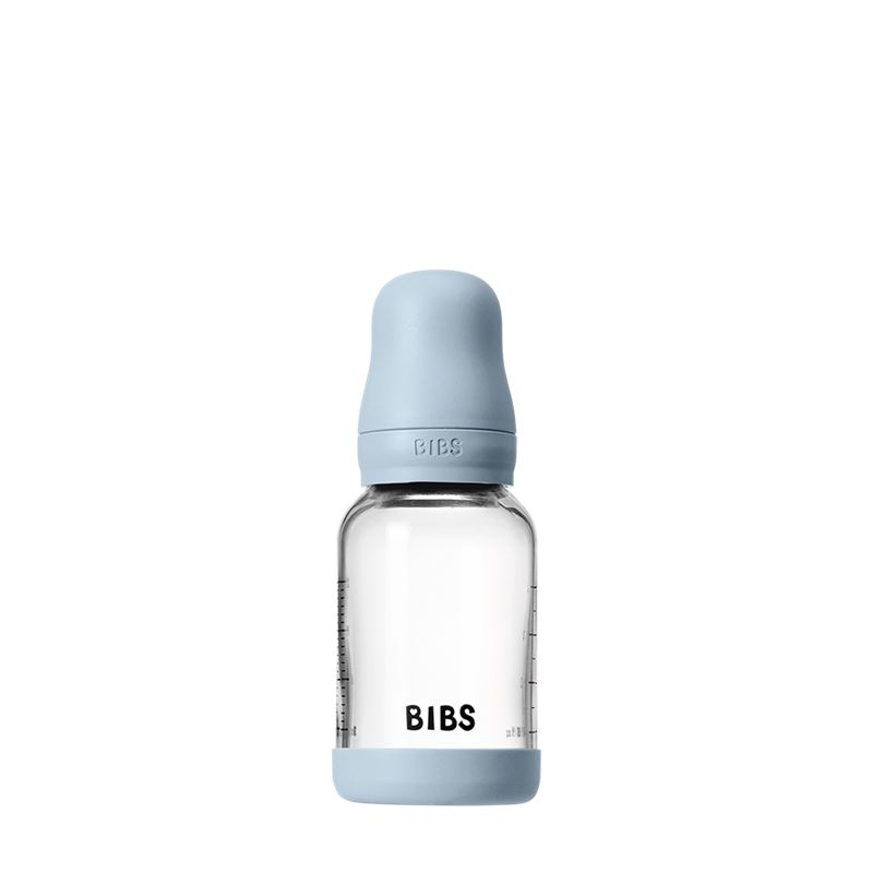 BIBS GLASS BABY BOTTLE 4 OZ BABY BLUE