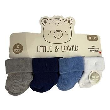 SOFT TERRY BABY SOCKS 8PK TAN/BLUE 6-12