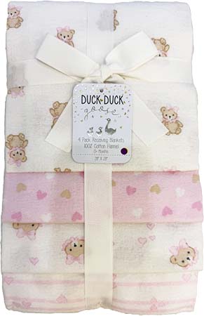 FLANNEL WOVEN RECEIVING BLANKET PINK 4 PK