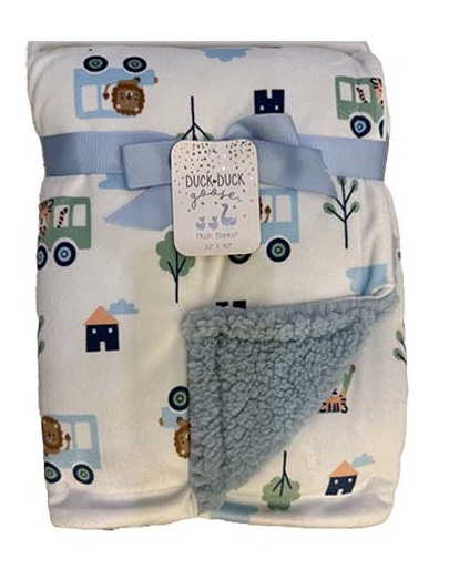 Our soft fleece baby blanket features a double layer fabric with super soft plush backing. 30” x 40” 100% polyester. Products may vary. Colors: Blue or Pink.