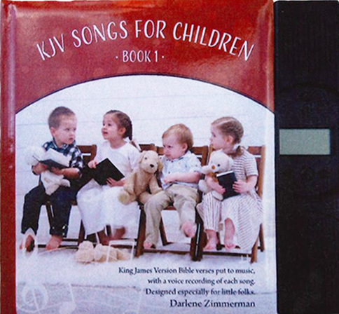 Twenty short songs, consisting of King James Version Bible verses put to music. Some new tunes. Each page has a full color photo of a child along with sheet music for a song. The acapella recordings are done by children. Two AAA batteries included and also a jack for headphones.