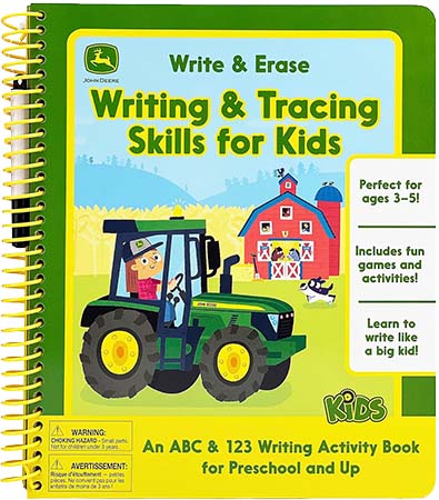 Use this wipe-clean book and the included marker to practice early writing skills with your John Deere friends on the farm. Learn how to follow instructions. You'll be writing your ABCs and 123s in no time! Ages: 3-5 8.5” 10.5”