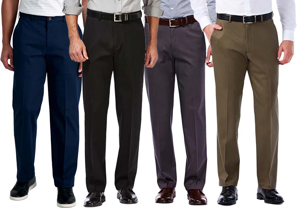 Our new Premium No Iron Khaki looks as great as it feels. Stretchable cotton-blend fabric, hidden expandable waistband and permanent crease will keep you looking sharp and comfortable. Machine washable. Fabric: 61% Cotton 37% Polyester 2% Spandex. Colors: Black, Dr Grey, Navy, and Toast. Sizes: 32-44 Length: 29, 30, and 32.