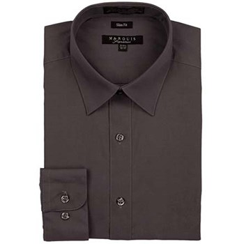 A basic marquis wrinkle-resistant, long sleeve dress shirt, something every man needs in his wardrobe. Point collar, No pocket. 55% cotton 45% polyester. Slim. Colors: White, Charcoal, Light Blue, and Silver. Sleeve sizes: 32/33 Neck Sizes: 14.5, 15.5, 16.5, 17.5 Sleeve Size: 34/35 Neck: 15.5, 16.5, 17.5, 18.5. Larger size available by special order. NO POCKET