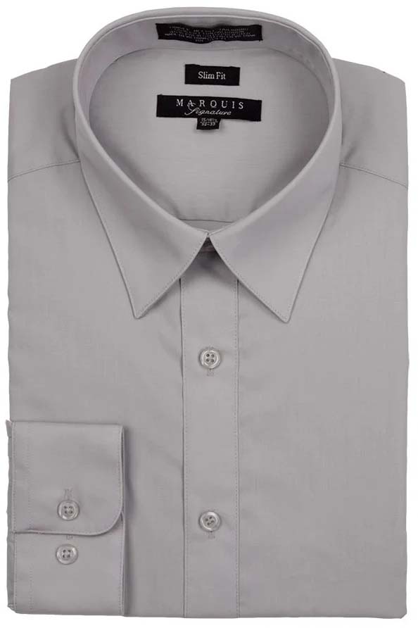 MARQUIS MEN'S LONG SLEEVE SHIRT SLIM SILVER 32/33 14.5
