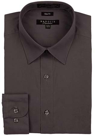 A basic marquis wrinkle-resistant, long sleeve dress shirt, something every man needs in his wardrobe. Point collar, One left chest pocket. 55% cotton 45% polyester. Slim. Colors: White, Charcoal, Light Blue, and Silver. Sleeve sizes: 32/33 Neck Sizes: 14.5, 15.5, 16.5, 17.5 Sleeve Size: 34/35 Neck: 15.5, 16.5, 17.5, 18.5. Larger size available by special order.