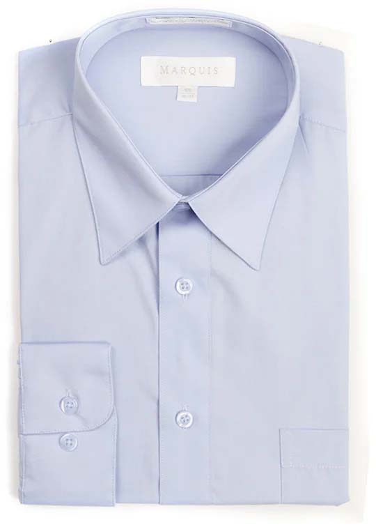 A basic marquis wrinkle-resistant, long sleeve dress shirt, something every man needs in his wardrobe. Point collar, One left chest pocket. 55% cotton 45% polyester. Colors: White, Charcoal, Light Blue, Silver, Sage, and Blue Steel. Sleeve sizes: 32/33 Neck Sizes: 14.5-17.5 Sleeve Size: 34/35 Neck: 15.5-19.5 Larger sizes available by special order.