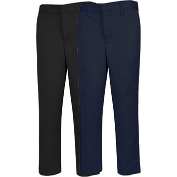 These flat front plain polyester pants feature a comfortable fit, with deep pockets, tapered leg, jean waistband and hem, and reinforced stitching. Stain and wrinkle resistant. 100% performance polyester. (light stretch) Boy sizes has reinforced knees. Colors: Black and Navy. Boy’s Sizes :3-20 Men's Sizes: waist 28-48 Lenght (30, 32, and 34")