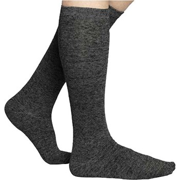 Flat knit knee high have a stretchy band below the knee, which helps them stay up. Sock content: 75% cotton, 24% polyester, 1% spandex Color: Black Heather. Size: 4.5-6, 6-7.5, 7-8.5, 8-9.5, 9-11, and 10-13