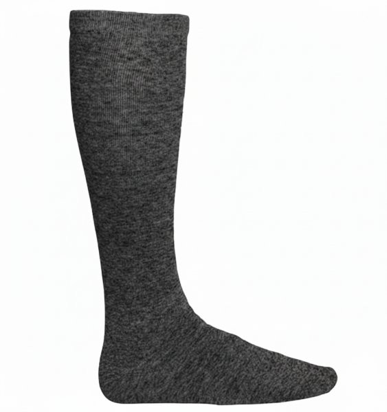Flat knit knee high have a stretchy band below the knee, which helps them stay up. Sock content: 75% cotton, 24% polyester, 1% spandex Color: Black Heather. Size: 4.5-6, 6-7.5, 7-8.5, 8-9.5, 9-11, and 10-13