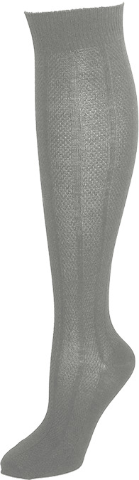 Textured striped pattern knee high. Year round comfort, odor resistant, moisture wicking bamboo. 70% Bamboo Viscose Rayon, 27% Polyester, 3% Spandex. 2 pairs per pack. Colors: Black and Med Grey. Sizes: S, M, L, and XL