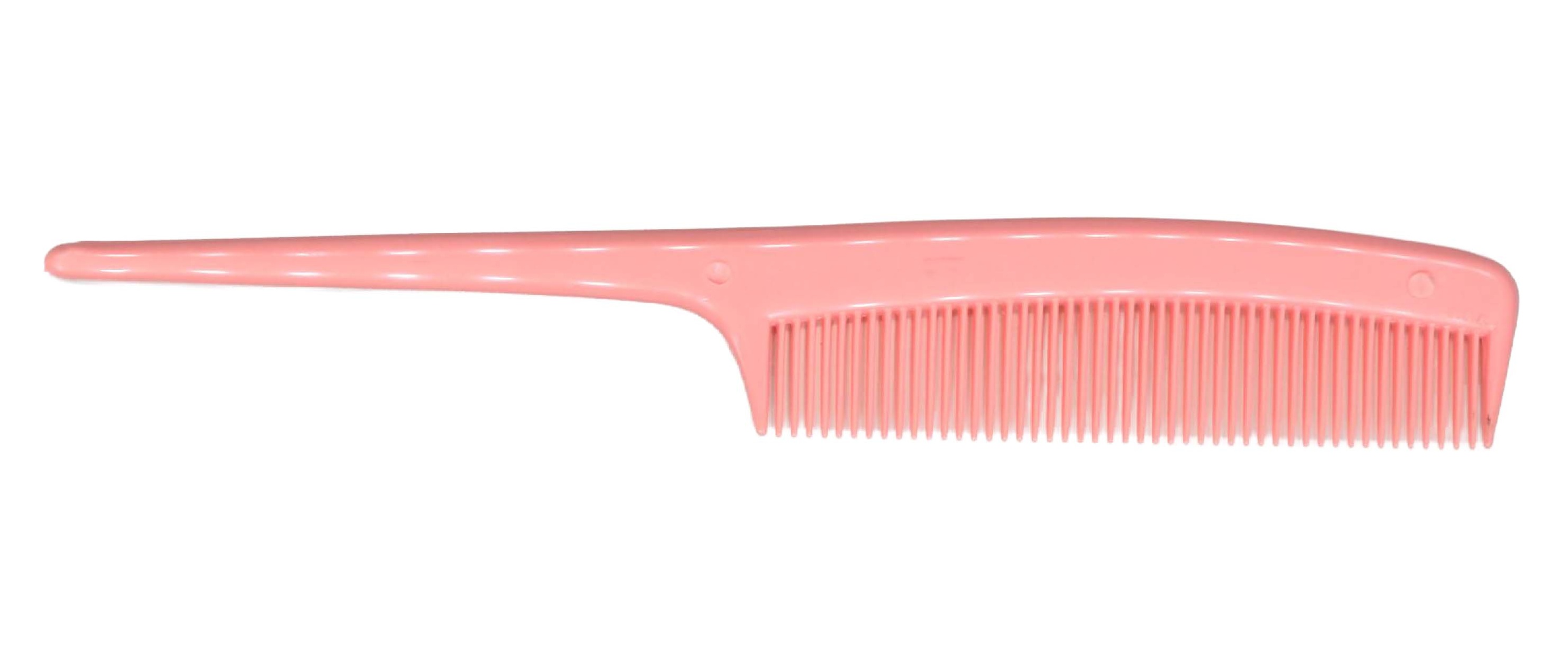 Sturdy, flexible plastic rattail comb. Assorted colors. 7 3/4”.