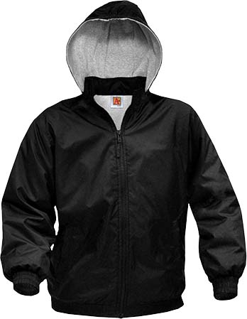 Wear this fleece lined, water-repellant nylon to keep you warm and cozy on a rainy, windy day. Elastic cuff bands. Full zipper. Zip-off fleece-lined hood. 2 outside zipper welt pockets. Inside velcro pocket. Colors: Black and Navy. Youth Sizes: XS (5-6), S (7-8), M (10-12), L (14-16), XL (18-20) Adult Sizes: S, M, L, XL, 2XL, and 3XL.