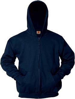 Hooded Sweatshirt is made of 60% cotton 40% polyester fabric with a full zipper for easy on and off. Two front pockets, ribbed cuffs and waistband that hold their shape. Fade and pill resistant. Colors: Black, Navy, Royal, and Hunter Green. Youth Sizes: XXS (1), XS (2-4), S (6-8), M (10-12), L (14-16), XL (18-20) Adult Sizes: S, M, L, XL, 2XL, and 3XL