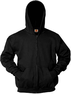 Hooded Sweatshirt is made of 60% cotton 40% polyester fabric with a full zipper for easy on and off. Two front pockets, ribbed cuffs and waistband that hold their shape. Fade and pill resistant. Colors: Black, Navy, Royal, and Hunter Green. Youth Sizes: XXS (1), XS (2-4), S (6-8), M (10-12), L (14-16), XL (18-20) Adult Sizes: S, M, L, XL, 2XL, and 3XL