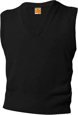 This versatile pullover vest will fit many situations, great for formal or informal occasions. Make of 100% pill-resistant acrylic, with reinforced stress areas. Rib-trim cuffs and bottom. No pockets. Color - Black. Youth Sizes: XXS (3-4), XS (5-6), S (7-8), M (10-12), L (14-16), XL (18-20) Adult Sizes: S, M, L, XL, 2XL, and 3XL