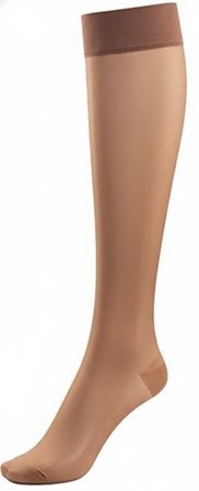Women's sheer knee hi with sleek fit and silky feel. Wide comfort no bind top and reinforced toe. 11% spandex 89% nylon. Color: Black, Off Black, Taupe. Sizes: 9-11, 9.5-12