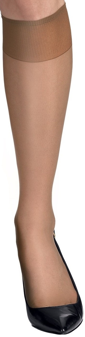 Sheer knit blends nylon/spandex for sleek fit and silky feel. Wide top band stays up without binding, for comfort hour after hour. Sheer toe. One size fits most. 15 denier, sheer appearance. 85% nylon, 15% spandex. Jet Black, Barely Black, Barely There, or Little Color.. 2 pair pack.