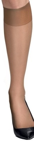 Sheer knit blends nylon/spandex for sleek fit and silky feel. Wide top band stays up without binding, for comfort hour after hour. Reinforced toe resists snags and runs. One size fits most. 15 denier, sheer appearance. 85% nylon, 15% spandex. Jet Black, Barely Black, Barely There or Little Color. 2 pair pack.