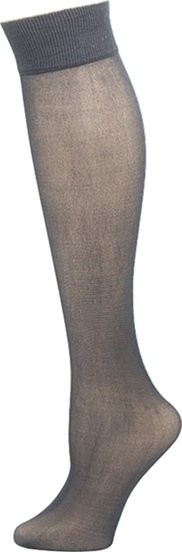 Plain opaque trouser sock. 1x1 ribbed stay-up top. 100% nylon exclusive of Spandex in top. 1 pair pack. Black. Sizes: 9-11 and 9.5-12.