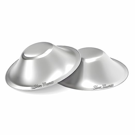 Silver Nursing Cups are anti-inflammatory, anti-microbial, and antifungal designed to help protect nipples and relieve severe pain while breastfeeding. Designed with naturally healing 925 silver for increased purity and effectiveness, and free of heavy metals, phthalates, and BPA. No need for balms or creams. Includes a soft carrying case. Two per pack. Sizes: Regular or Large.