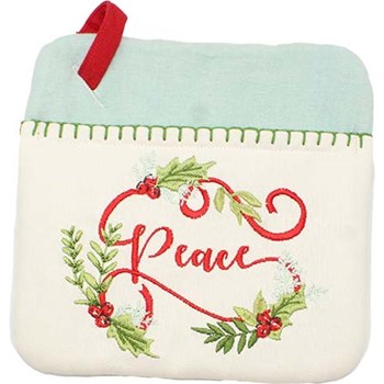 Pocket allows you to easily slip in your hand for protection on hot pots and pans. Loop for hanging when not in use. 8" X 9"