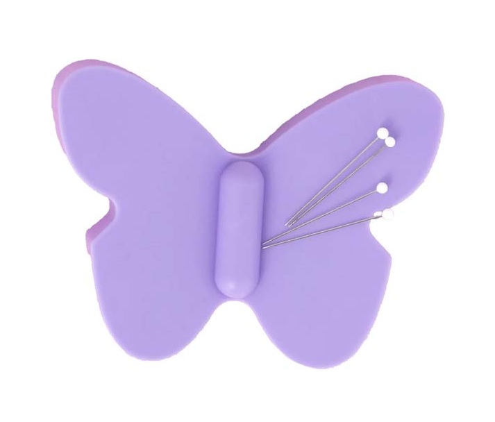 Add a pop of color to your sewing space with the butterfly-shaped pin and needle magnet. Designed with upward sloping wings for easy pickup. 4" x 3" Assorted colors.