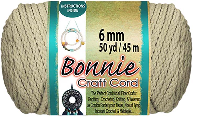 Bonnie craft cord is made from 100% polyolefin fiber, making this cord durable, colorfast, heat fusible, washable, and UV-stable. This 6mm braided cord is perfect material for macrame projects requiring medium-duty cord including rugs, wall hangings, and plant hangers. Works best with crochet hook size N13/9mm. 50 yards per skeins. 6mm or .24”