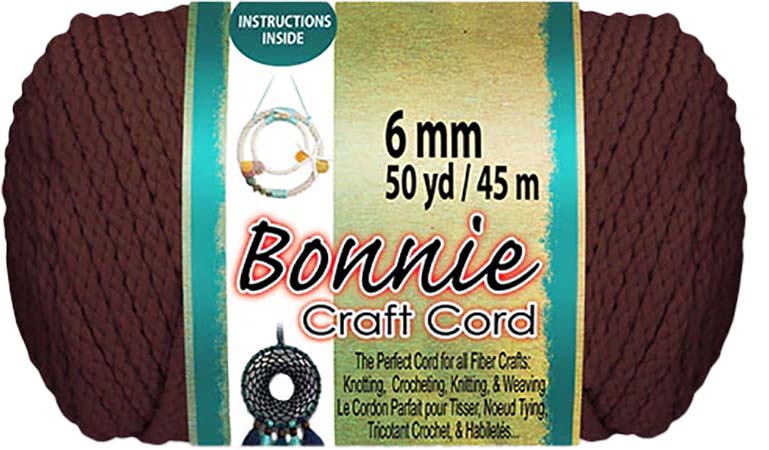 Bonnie craft cord is made from 100% polyolefin fiber, making this cord durable, colorfast, heat fusible, washable, and UV-stable. This 6mm braided cord is perfect material for macrame projects requiring medium-duty cord including rugs, wall hangings, and plant hangers. Works best with crochet hook size N13/9mm. 50 yards per skeins. 6mm or .24”