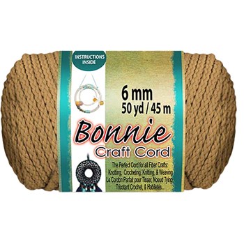 Bonnie craft cord is made from 100% polyolefin fiber, making this cord durable, colorfast, heat fusible, washable, and UV-stable. This 6mm braided cord is perfect material for macrame projects requiring medium-duty cord including rugs, wall hangings, and plant hangers. Works best with crochet hook size N13/9mm. 50 yards per skeins. 6mm or .24”