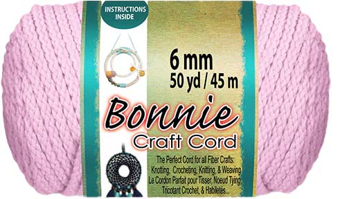Bonnie craft cord is made from 100% polyolefin fiber, making this cord durable, colorfast, heat fusible, washable, and UV-stable. This 6mm braided cord is perfect material for macrame projects requiring medium-duty cord including rugs, wall hangings, and plant hangers. Works best with crochet hook size N13/9mm. 50 yards per skeins. 6mm or .24”
