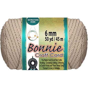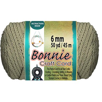 Bonnie craft cord is made from 100% polyolefin fiber, making this cord durable, colorfast, heat fusible, washable, and UV-stable. This 6mm braided cord is perfect material for macrame projects requiring medium-duty cord including rugs, wall hangings, and plant hangers. Works best with crochet hook size N13/9mm. 50 yards per skeins. 6mm or .24”