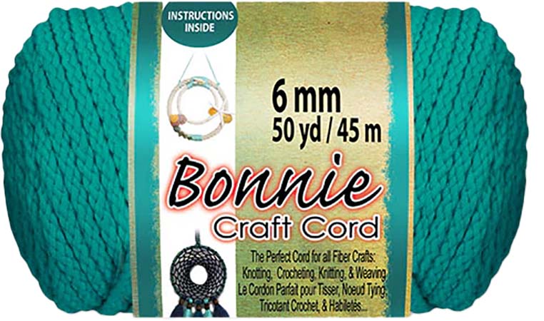 Bonnie craft cord is made from 100% polyolefin fiber, making this cord durable, colorfast, heat fusible, washable, and UV-stable. This 6mm braided cord is perfect material for macrame projects requiring medium-duty cord including rugs, wall hangings, and plant hangers. Works best with crochet hook size N13/9mm. 50 yards per skeins. 6mm or .24”