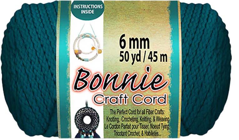 Bonnie craft cord is made from 100% polyolefin fiber, making this cord durable, colorfast, heat fusible, washable, and UV-stable. This 6mm braided cord is perfect material for macrame projects requiring medium-duty cord including rugs, wall hangings, and plant hangers. Works best with crochet hook size N13/9mm. 50 yards per skeins. 6mm or .24”