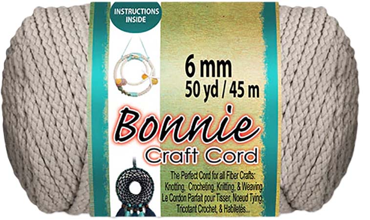Bonnie craft cord is made from 100% polyolefin fiber, making this cord durable, colorfast, heat fusible, washable, and UV-stable. This 6mm braided cord is perfect material for macrame projects requiring medium-duty cord including rugs, wall hangings, and plant hangers. Works best with crochet hook size N13/9mm. 50 yards per skeins. 6mm or .24”