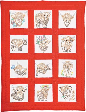 J.D. 9" QUILT BLOCKS HIGHLAND COWS