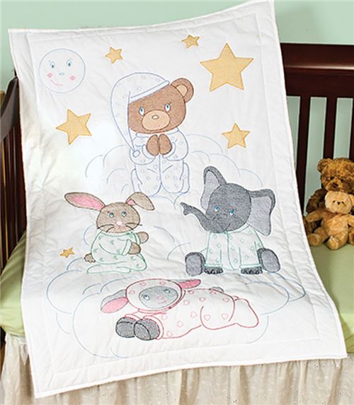 J.D. CRIB QUILT TOP PRAYING BEAR AND FRIENDS