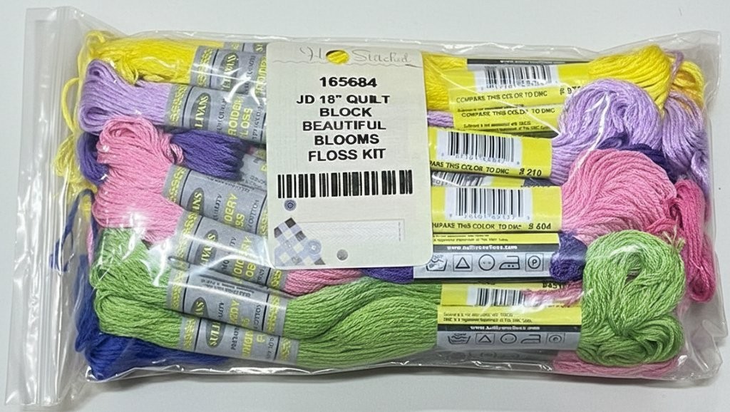 J.D. 18" QUILT BLOCKS BEAUTIFUL BLOOMS FLOSS KIT