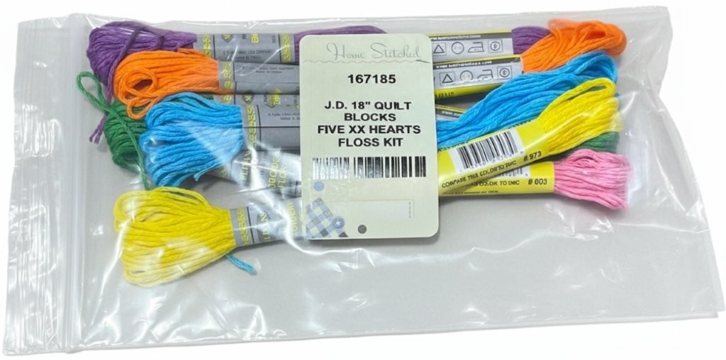 J.D. 18" QUILT BLOCKS FIVE XX HEARTS FLOSS KIT