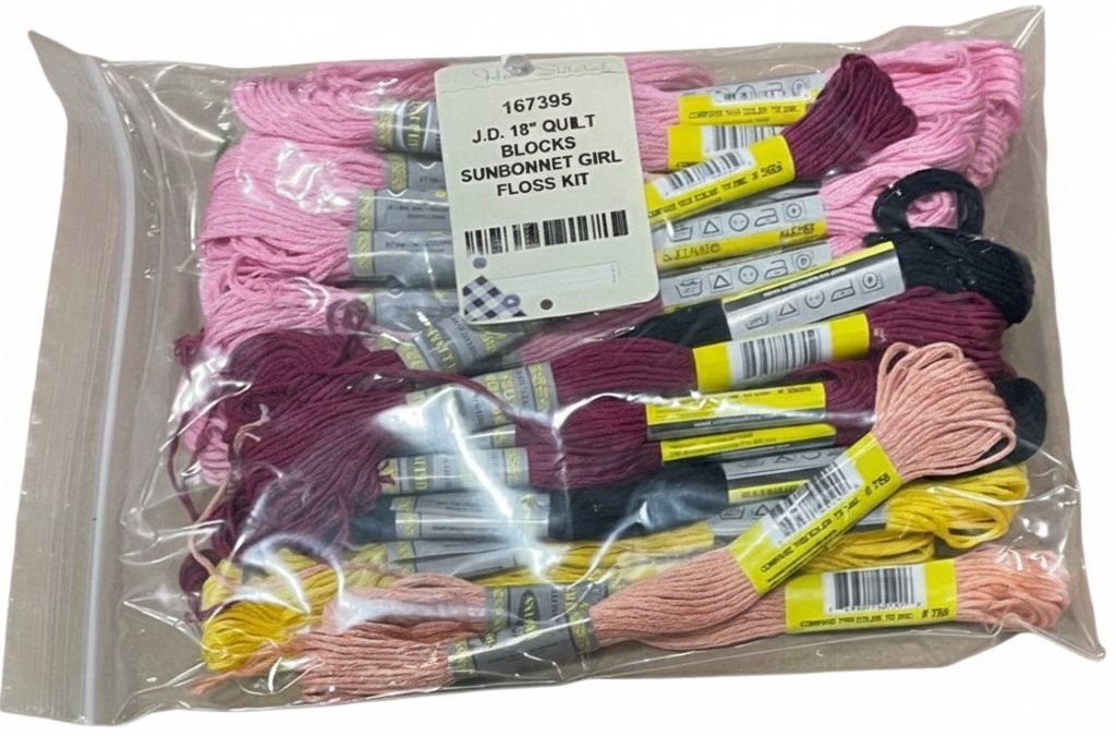 J.D. 18" QUILT BLOCKS SUNBONNET GIRL FLOSS KIT