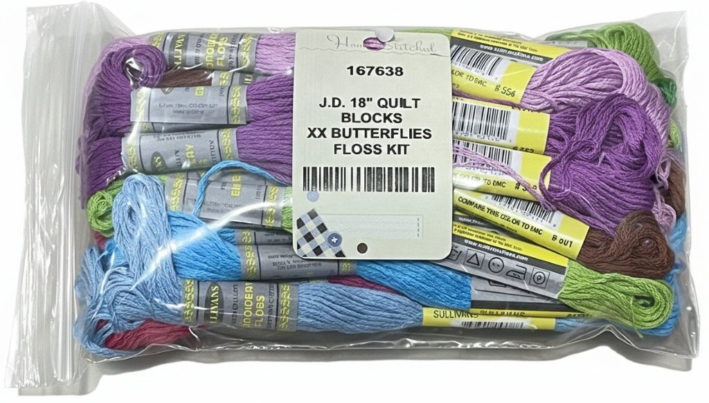 J.D. 18" QUILT BLOCKS XX BUTTERFLIES FLOSS KIT