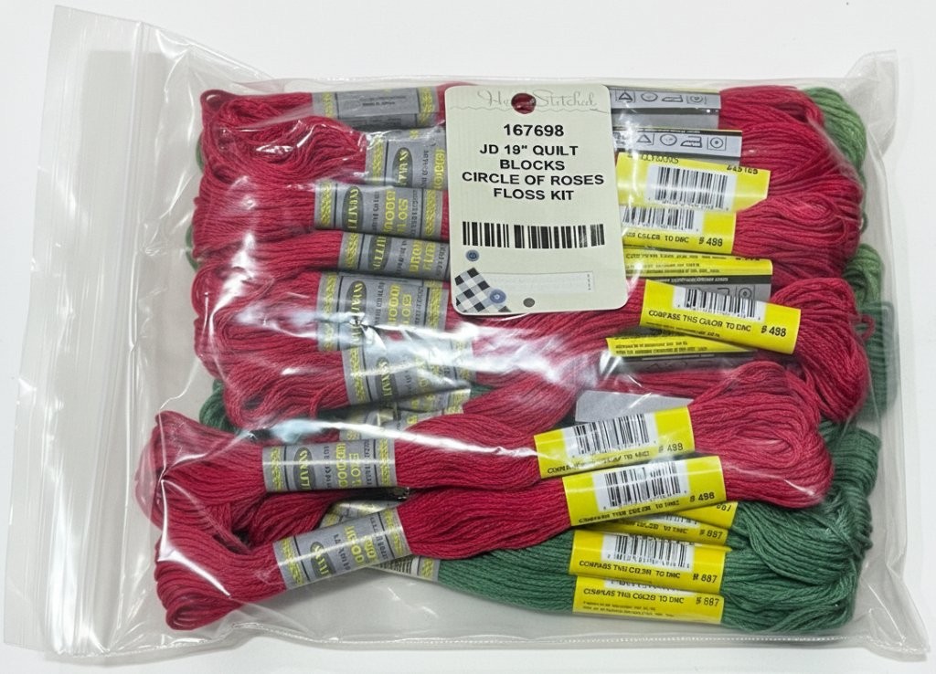 J.D. 18" QUILT BLOCKS CIRCLE OF ROSES FLOSS KIT