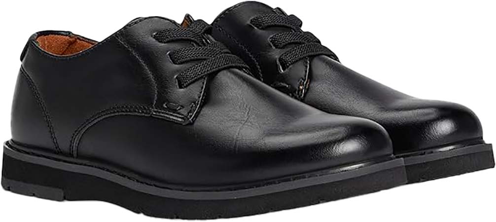 This plain toe shoes are ultra-comfortable with smooth leather upper and breathable textile linings. Fully cushioned Memory Foam foot bed for all-day comfort with durable lightweight rubber sole. Black. Boys' sizes: M, 10-7, including half sizes.