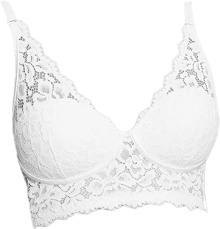 The longline design features a scallop-edged neckline, all-over lace cups, and a mesh back. Lightly lined foam cups provide comfortable support, while the longline frame features side boning for a flattering fit. The lovely design is highlighted with adjustable, convertible straps that can be worn traditional, halter, or crisscross, suiting a wide variety of fashion choices. Fabric content: 90% Nylon, 10% Spandex Colors may vary. Color: White or Beige. Sizes: A-32-36, B 32-40, C 32-40, D 32-40