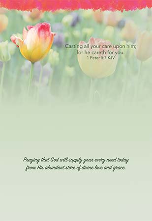 Praying that God will supply your every need today from His abundant store of divine love and grace. 1 Peter 5:7 KJV