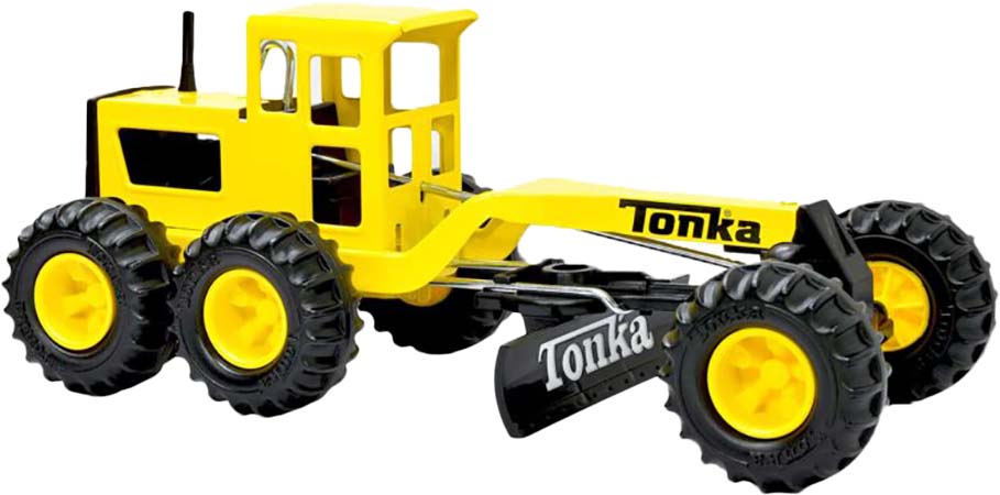 The Tonka Steel Classics Road Grader is ready to level dirt and gravel like a pro! Move the blade side to side to flatten anything in its path; no material is too tough for this hard-working vehicle to handle. Move dirt, sand, and gravel with the workable blade and take control of any job site! This Road Grader is built Tonka tough with real steel! 8.8" x 18" x 8"